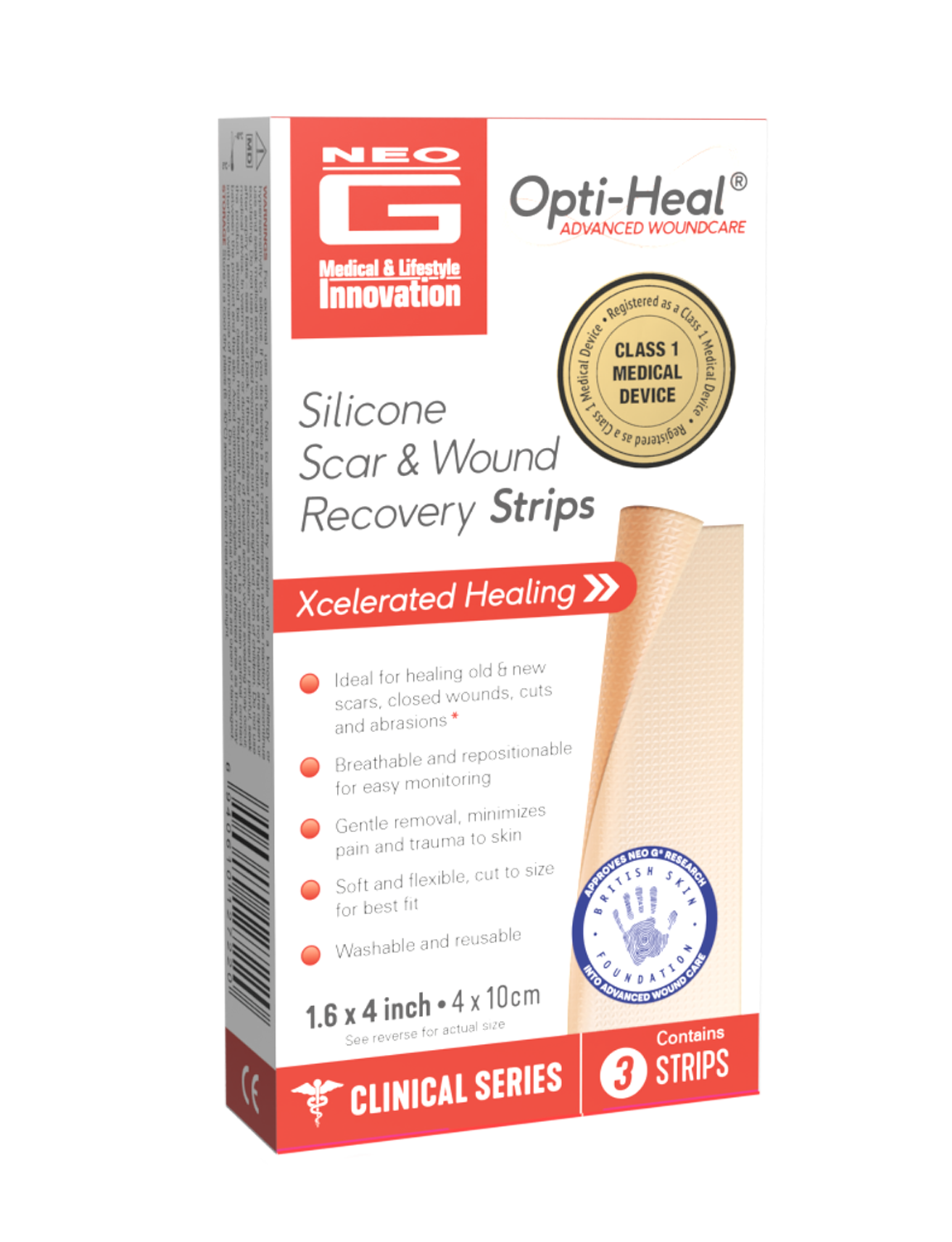 Following surgery, you may be self-conscious about scars that may have formed at the wound site. Using Opti-Heal Advanced Wound Dressings during the initial stages of post-surgical recovery helps maintain a moist healing environment, which is crucial for minimising scarring. However, we have also developed Opti-Heal Silicone Scar & Wound Recovery Strips. They are soft, thin and reusable self-adhesive silicone gel strips, effective for the management of both new and old hypertrophic or keloid scars and closed surgical wounds. They make scars look lighter, flatter and faded.